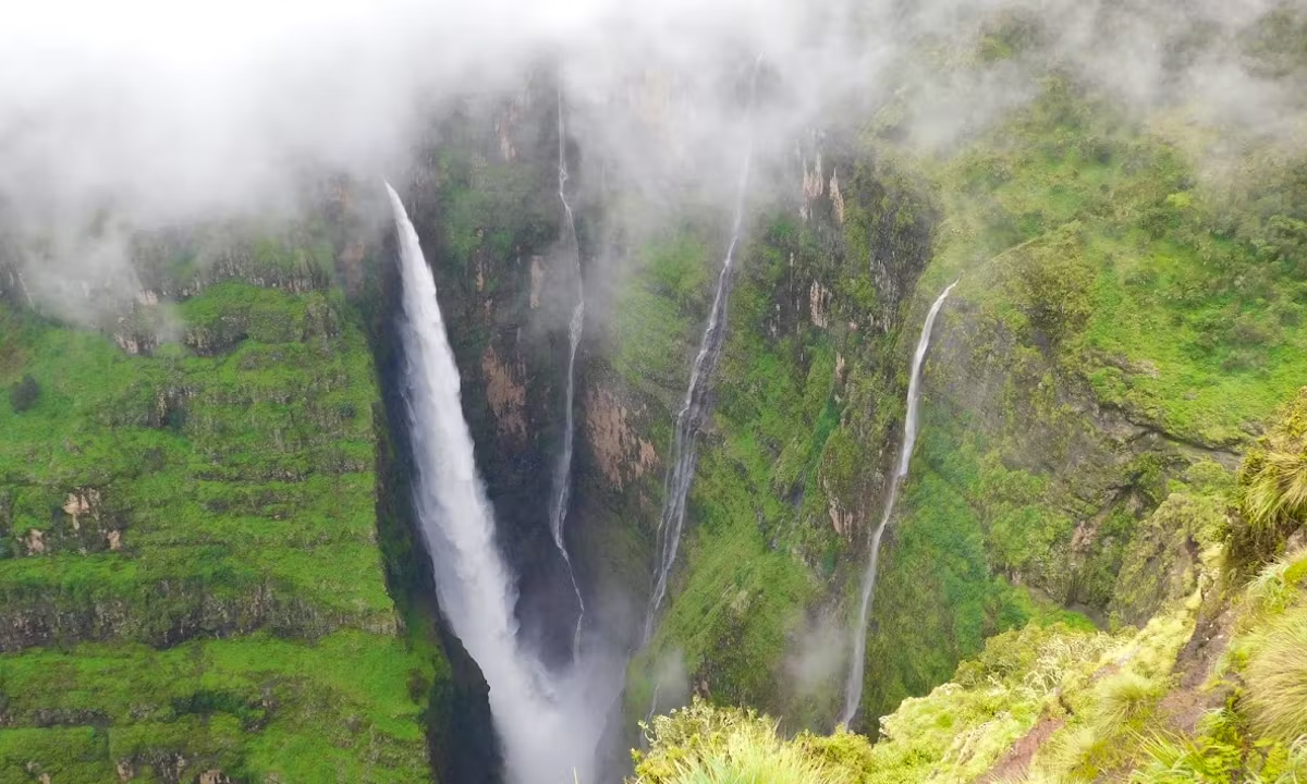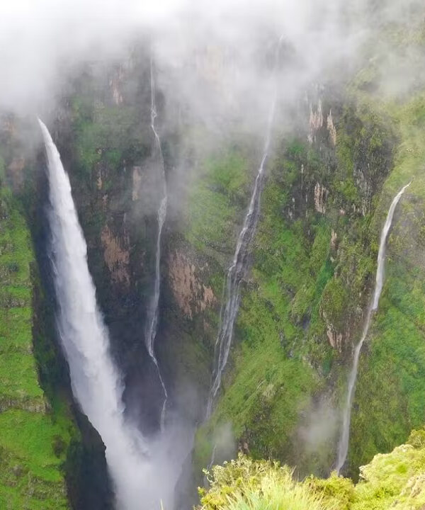 The Simien Mountains in northern Ethiopia form one of the most dramatic landscapes in Africa, shaped by millions of years of erosion on the Ethiopian plateau. Jagged peaks, deep valleys, and sheer cliffs dropping up to 1,500 meters create a breathtaking panorama often called the “Roof of Africa,” with Ras Dashen standing as the country’s highest point at 4,550 meters. This UNESCO World Heritage Site is renowned for its unique Afro-alpine scenery and as a haven for endemic wildlife, including troops of gelada baboons grazing on high plateaus, the rare walia ibex clinging to steep escarpments, and the endangered Ethiopian wolf.